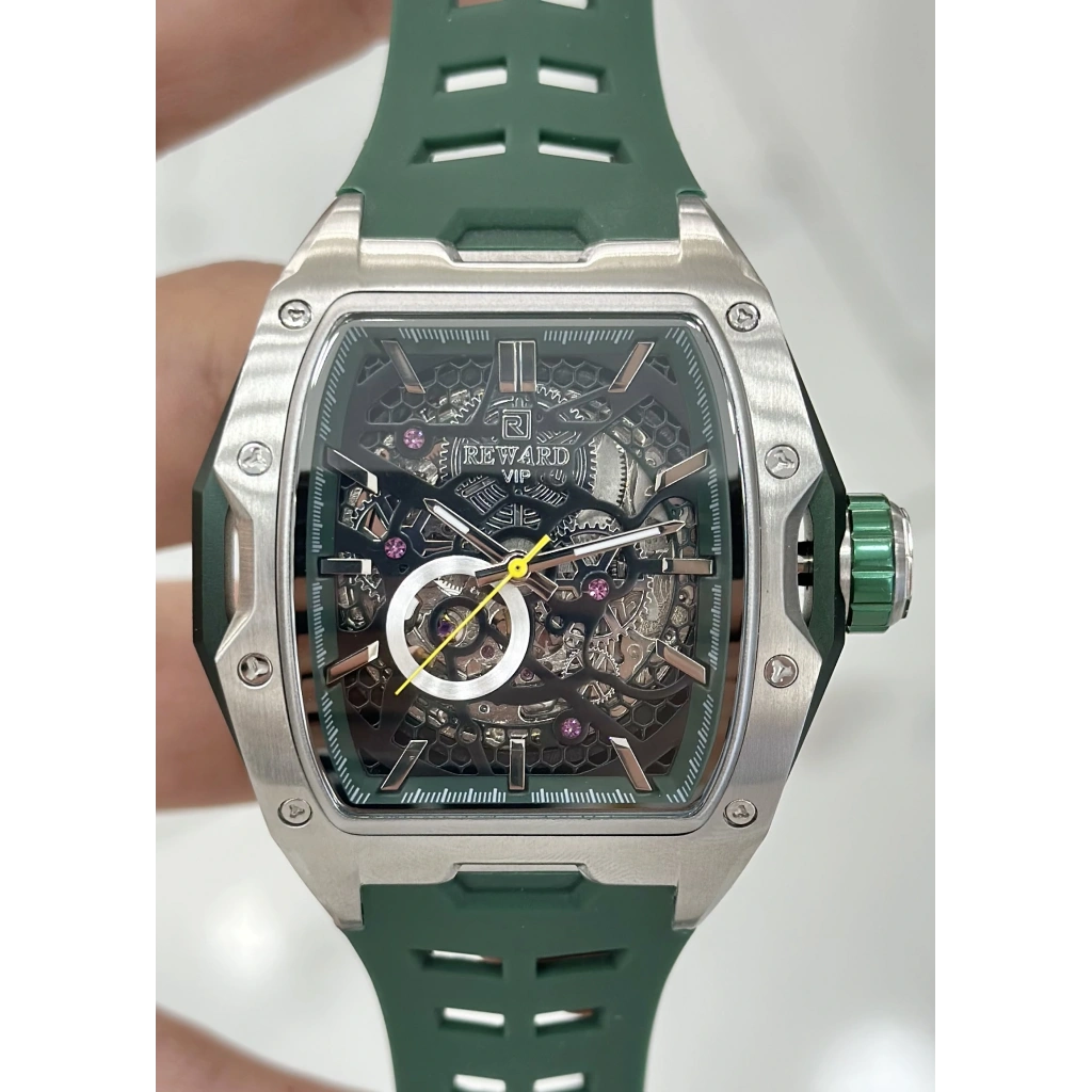 Reward Orijinal 2 Yıl Garantili 5ATM Su Geçirmezlik Yeşil Kadran Çelik Kordon Otomatik Erkek Kol Saati ILK.127.S