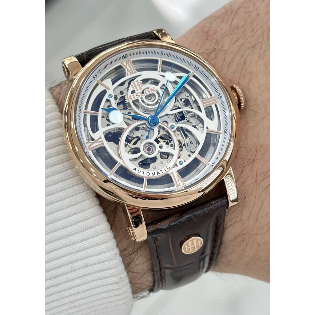Hislon Orijinal Deri Kordon Su Geçirmez Otomatik Erkek Kol Saati ILKSD104R-16KR