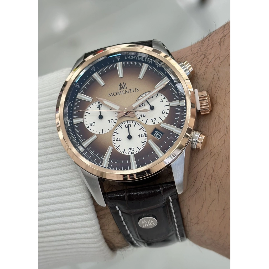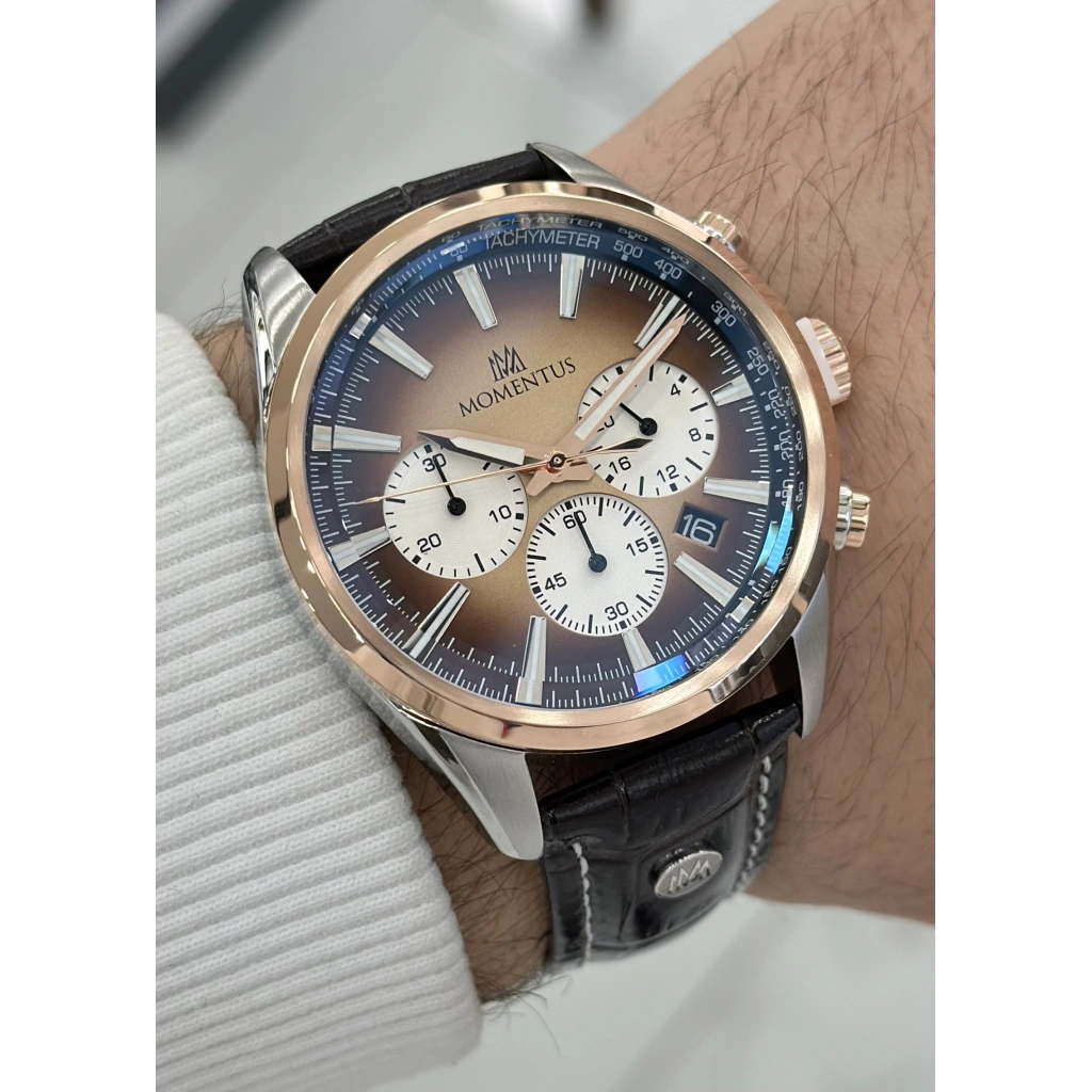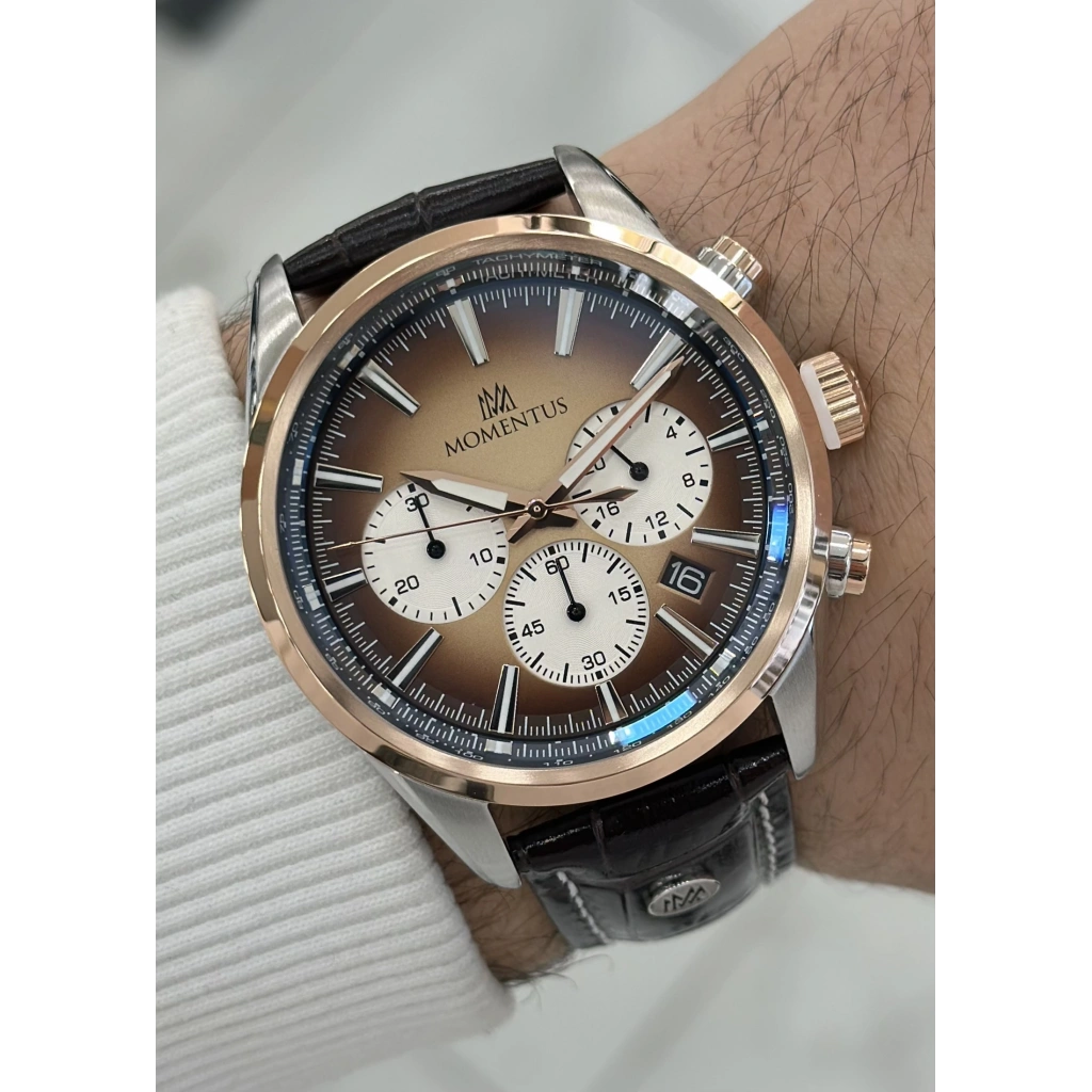 Momentus Orijinal Kahverengi Deri Kordon 10ATM Su Geçirmezlik Erkek Kol Saati ILKCC306G-15KG