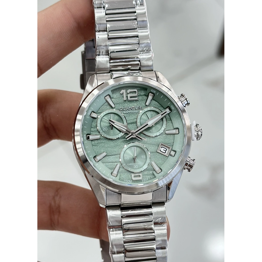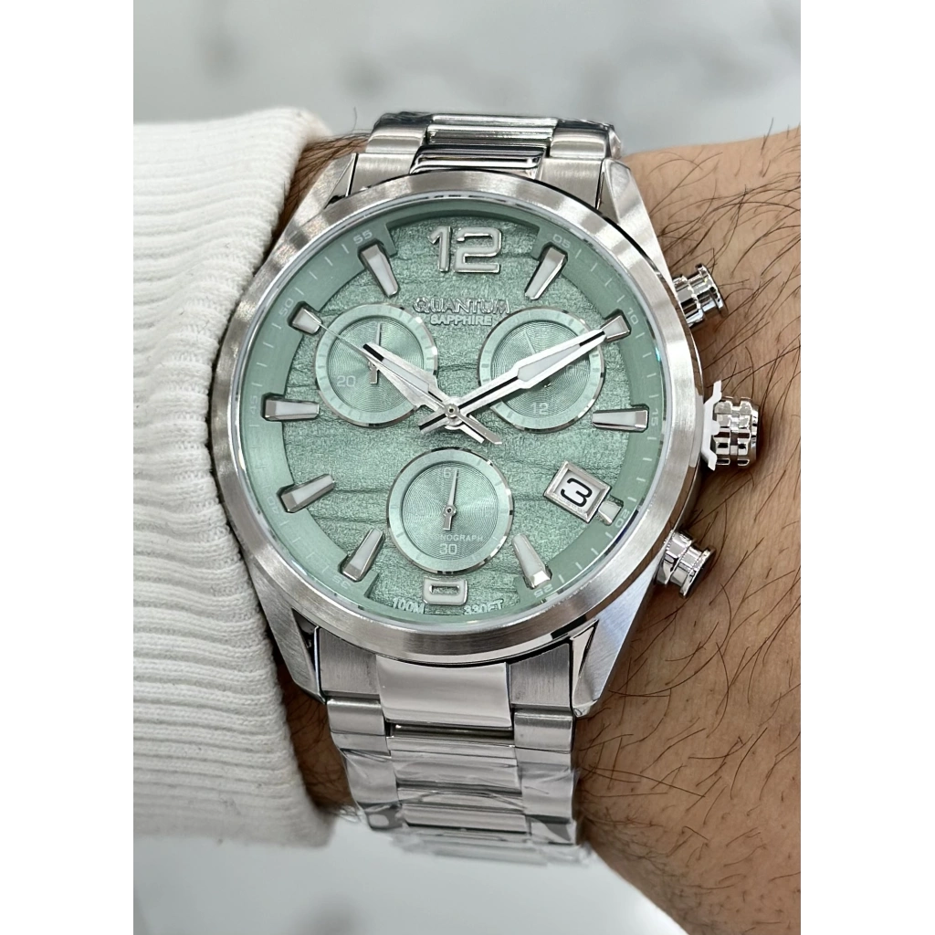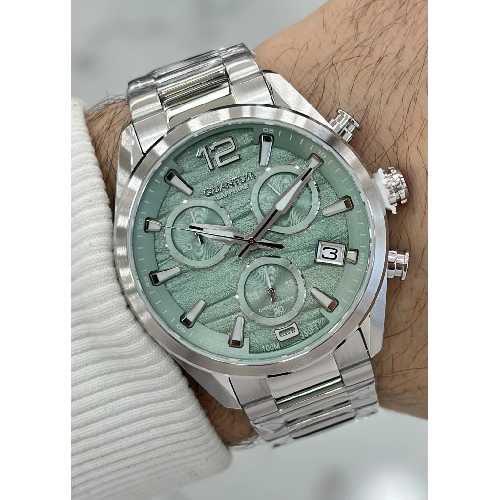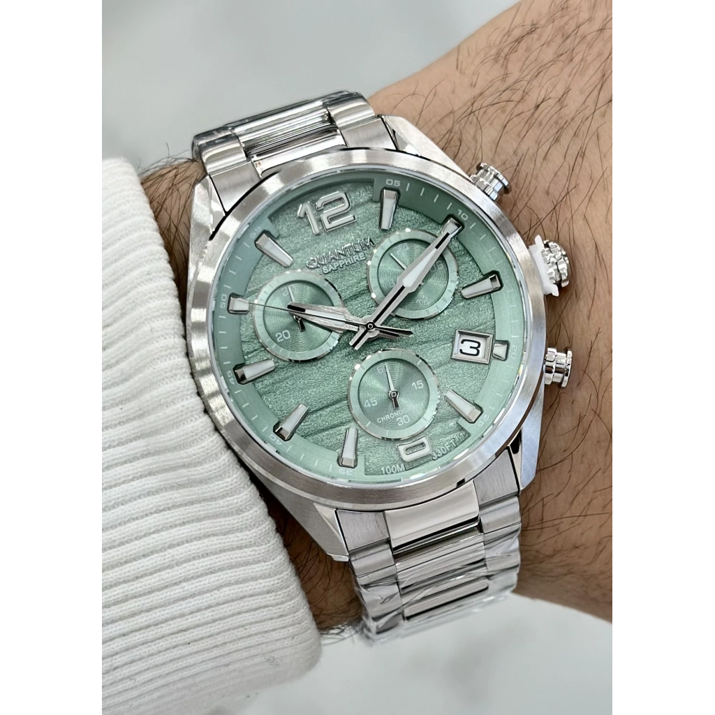 Quantum Çelik Kordon Yeşil Katran Safir Cam 10ATM Su Geçirmezlik Erkek Kol Saati