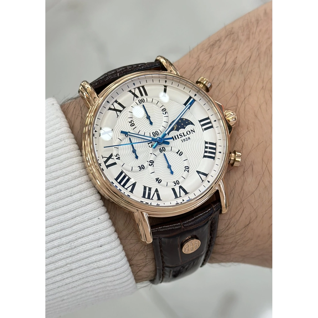 Hislon Orijinal Deri Kordon Su Geçirmez Otomatik Erkek Kol Saati ILKSD201G-16KG