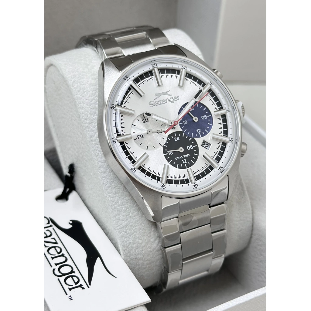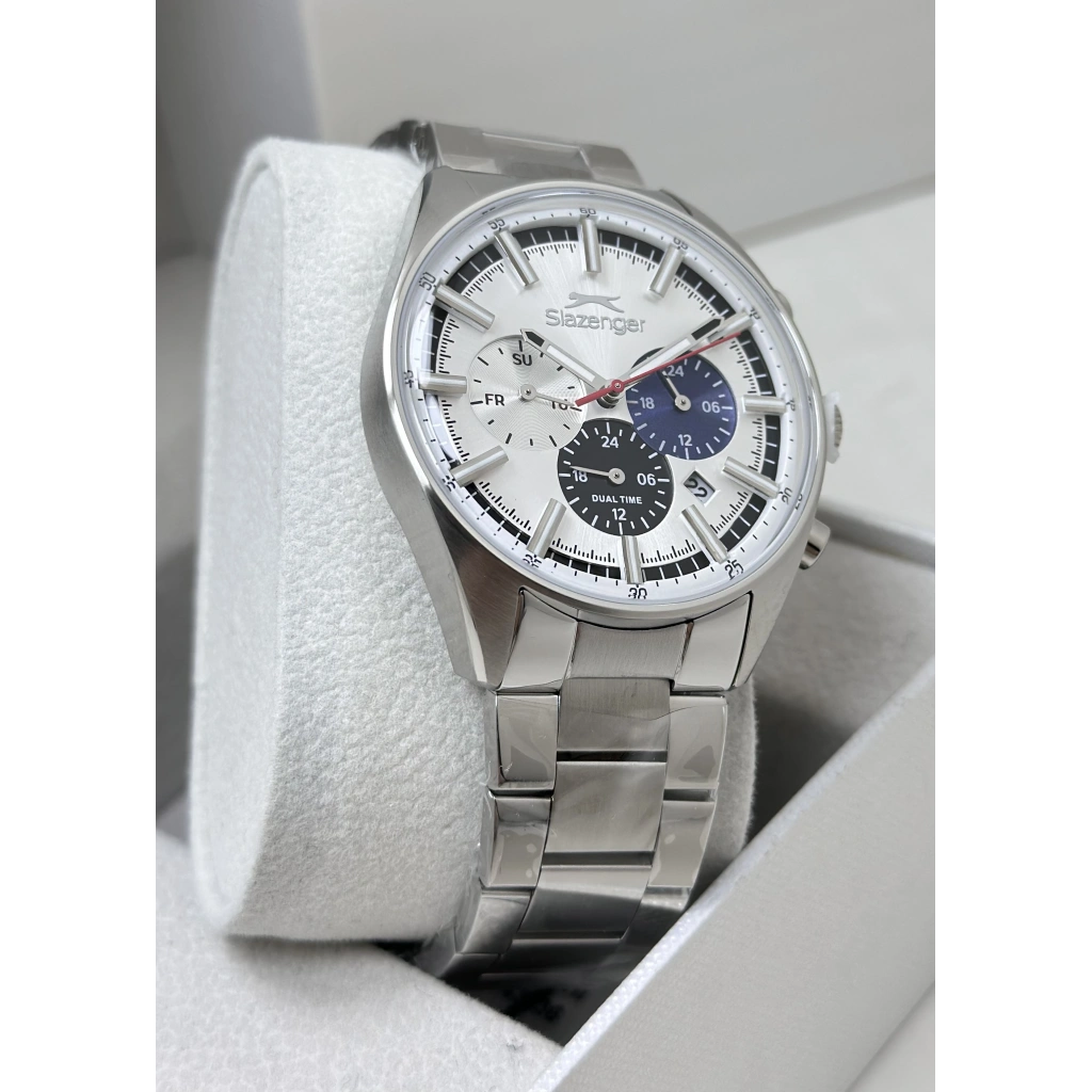 Slazenger Orijinal Beyaz Katran 10ATM Su Geçirmezlik Fonksiyonlu Çelik Kordon Erkek Kol Saati ILK.2602.1