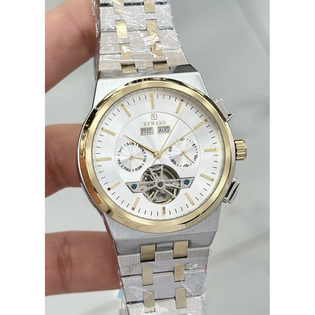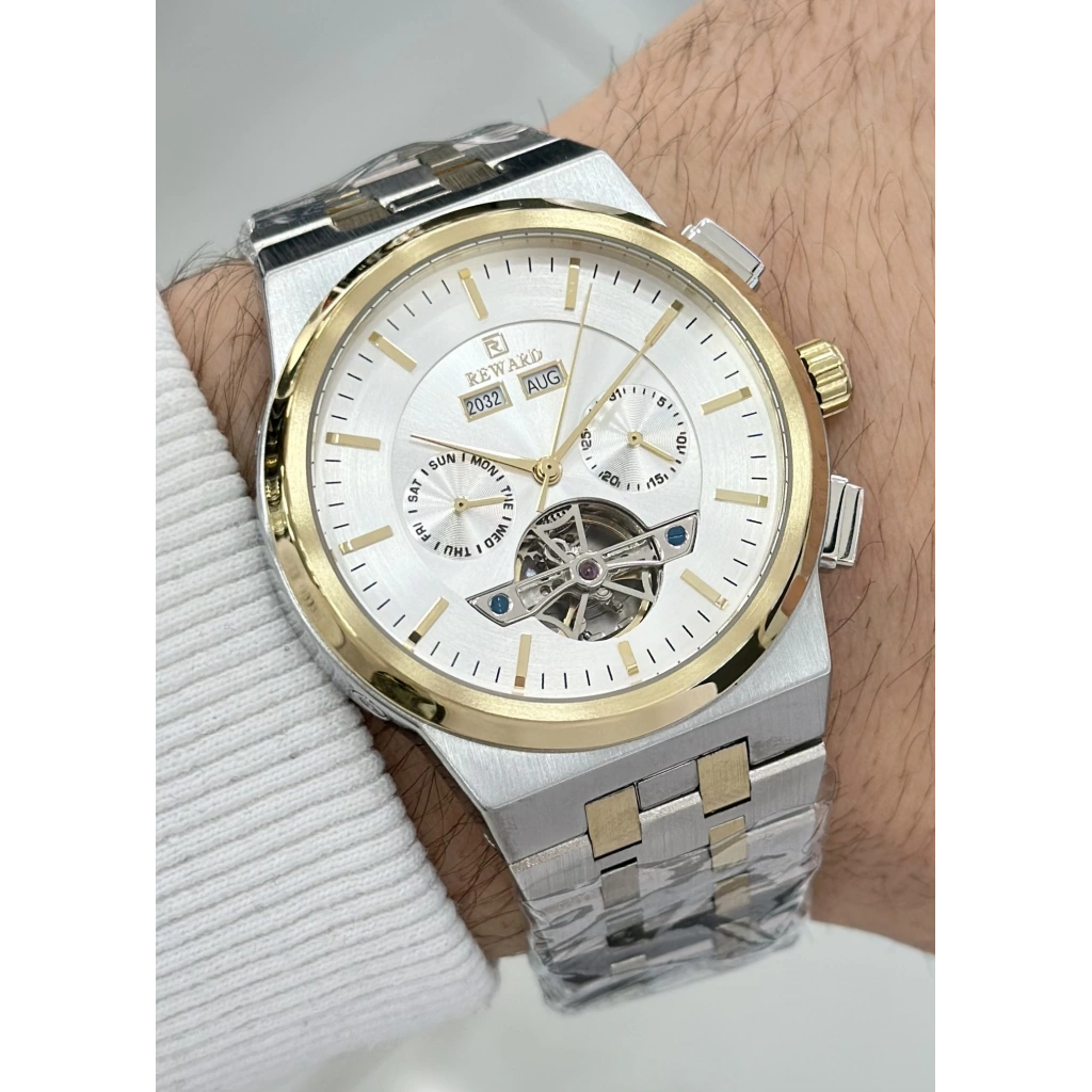 Reward Orijinal 2 Yıl Garantili 5ATM Su Geçirmezlik Beyaz Kadran Çelik Kordon Otomatik Erkek Kol Saati ILK.127.H