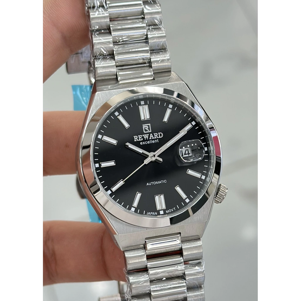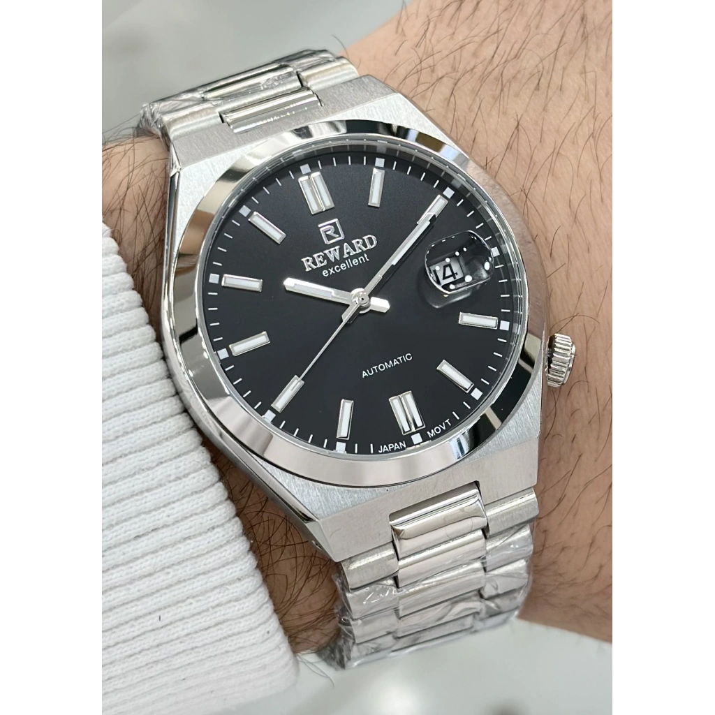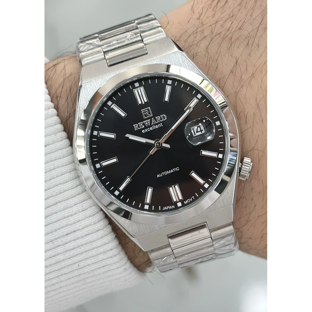 Reward Orijinal 2 Yıl Garantili 5ATM Su Geçirmezlik Siyah Kadran Çelik Kordon Otomatik Erkek Kol Saati ILK.127.N