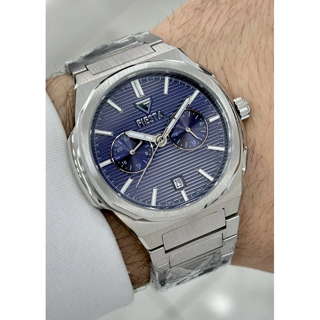 FİESTA FONKSİYONLU LACİVERT KADRAN DAMAT SAATİ ÇELİK ORJİNAL 2 YIL GRANTİLİ SU GEÇİRMEZ RENK ATMAZ ERKEK KOL SAATİ