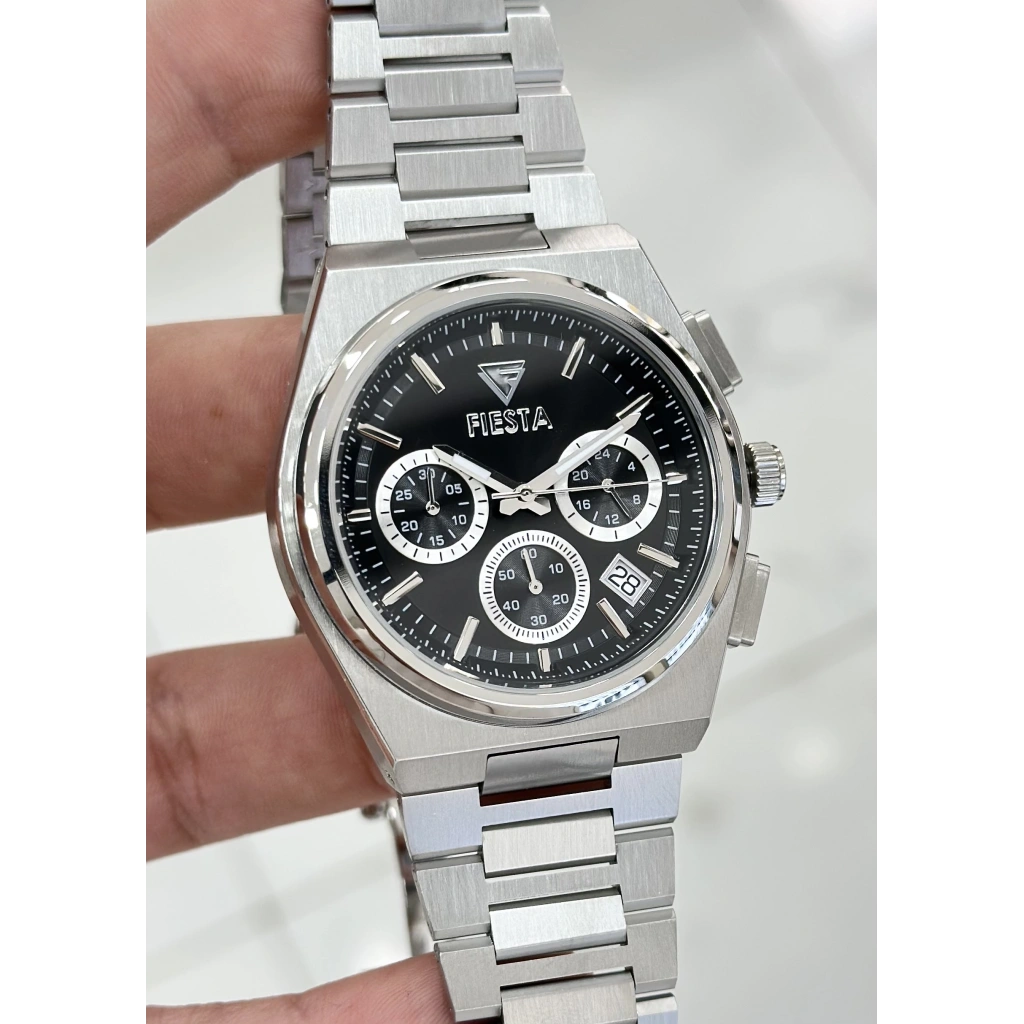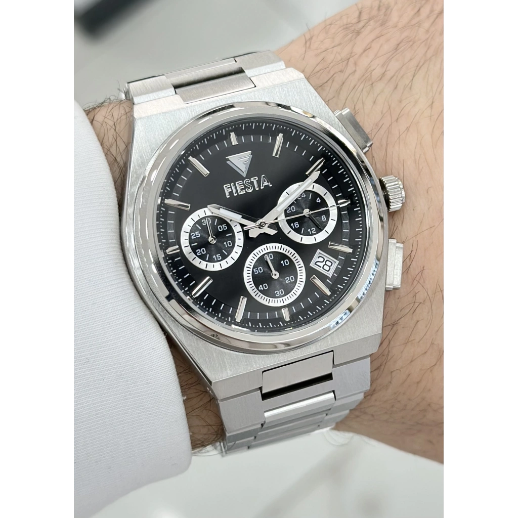 FİESTA FONKSİYONLU SİYAH KADRAN DAMAT SAATİ ÇELİK ORJİNAL 2 YIL GRANTİLİ SU GEÇİRMEZ RENK ATMAZ ERKEK KOL SAATİ