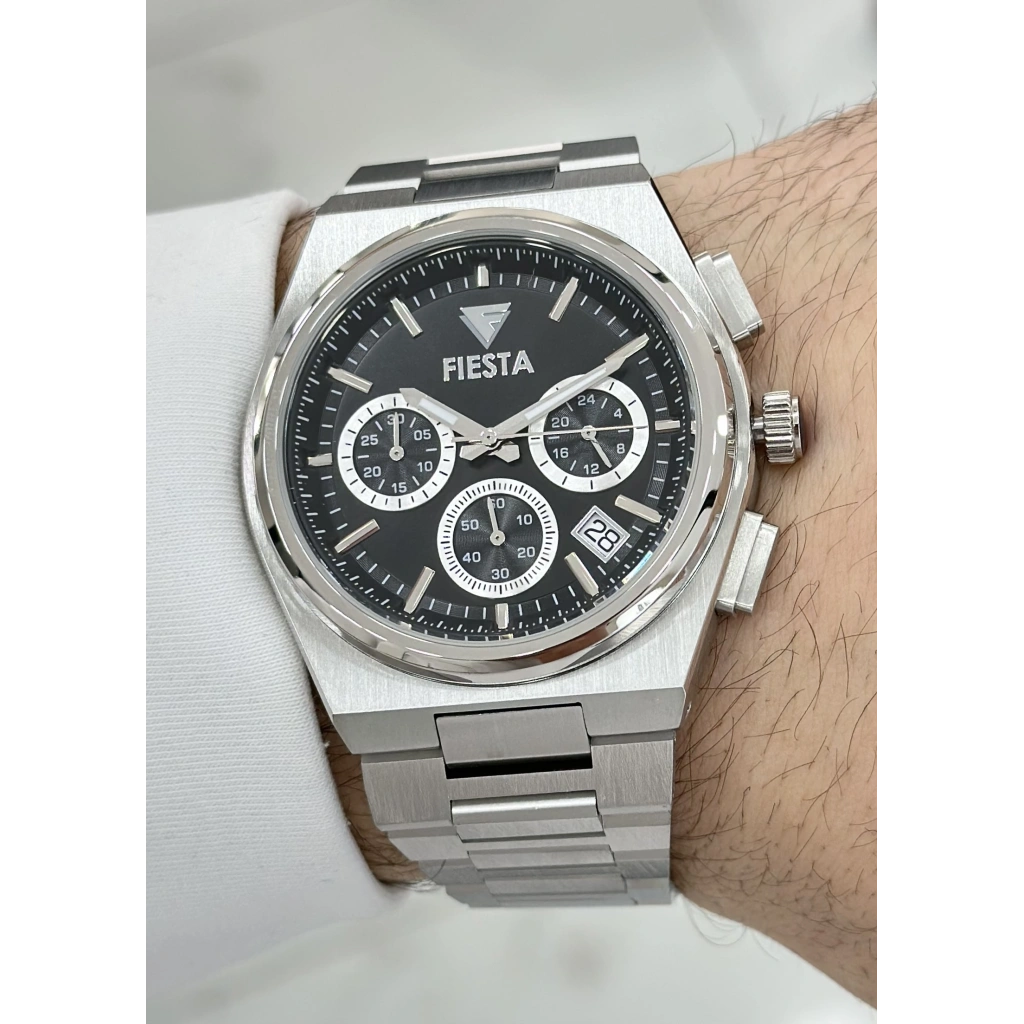 FİESTA FONKSİYONLU ÇELİK KORDON SİYAH KADRAN ORJİNAL 2 YIL GARANTİLİ SU GEÇİRMEZ HEDİYELİK ERKEK KOL SAATİ
